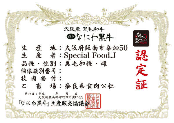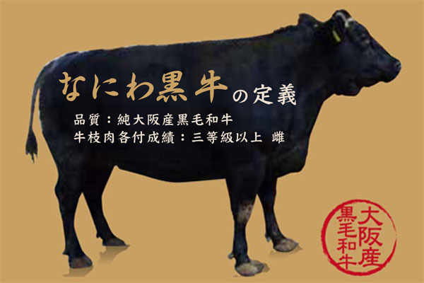 なにわ黒牛とは、純大阪産黒毛和牛で三等級以上の雌と定義しています。A5ランクという指標ではなく「おいしさ」を追及するために飼料の配合や育て方を長年研究して育てています。